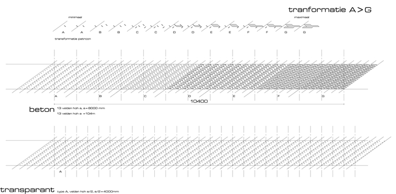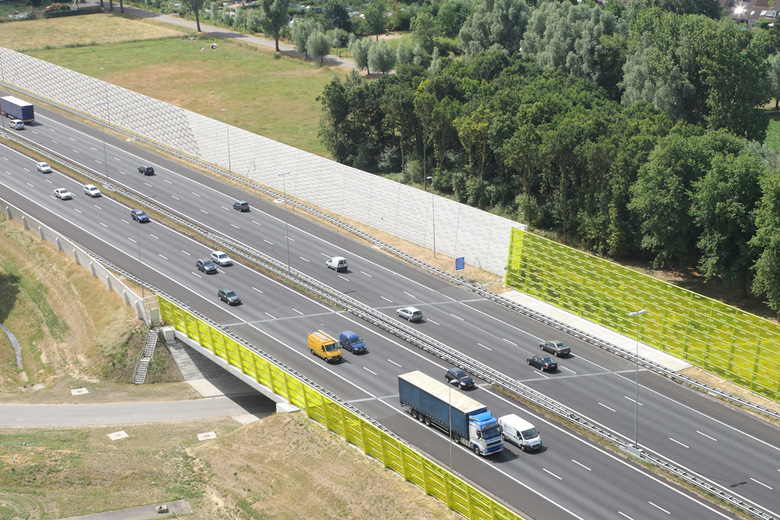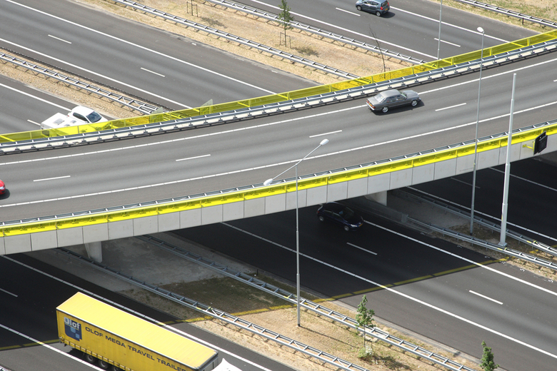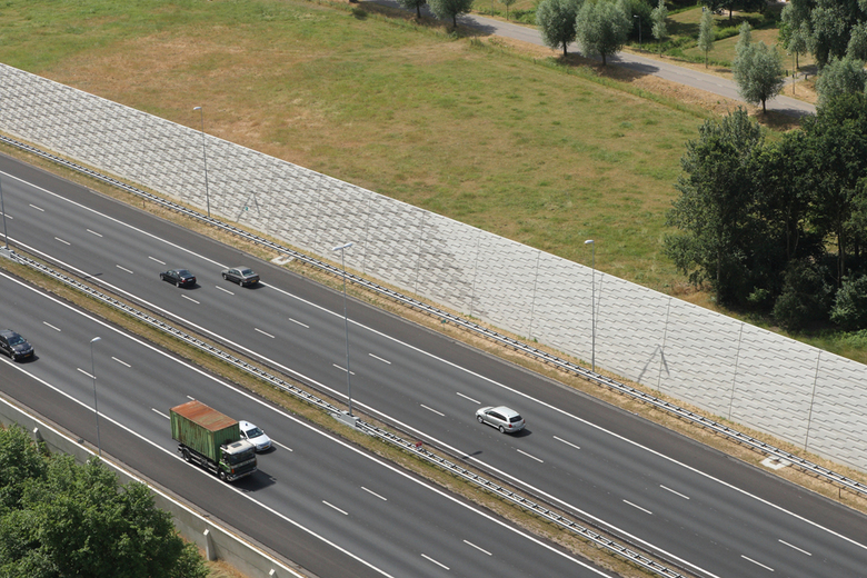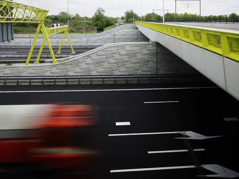 The re-shaping of A2 provides an opportunity to introduce a more consistent visual aspect to this stretch of motorway. The main aim of the design is to work within a broad, urban architectural vision of integrality and coherence, whilst providing this important route with a recognizable identity. This identity is expressed through the efficiency in the design of the various elements by way of a simple concept which lends itself to repetition. The structural elements are durable and low-maintenance while the detailing is designed to withstand the effects of weathering and pollution. The concrete sound barriers are clad in a continuous relief, while the transparent barriers are printed with this same pattern; an abstracted migrating bird which alludes to the identity of the A2 as a section of the European route Amsterdam – Palermo.