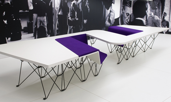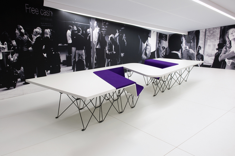 It may become a quiet reading table found in a library, or a work and relaxation place located in an airport lounge. It could simply be used in a waiting room, in a front office or in a school. It may also act as a meeting space for exhibitions or in shops. Whichever role it fills, everyone is given the opportunity to discover their own practical use for the SitTable. It is designed to serve one's own intended purpose for functionality and arrangement. The hybrid form of the SitTable combines two pieces of multi-functional furniture, offering a variety of space-creating authority to the user.