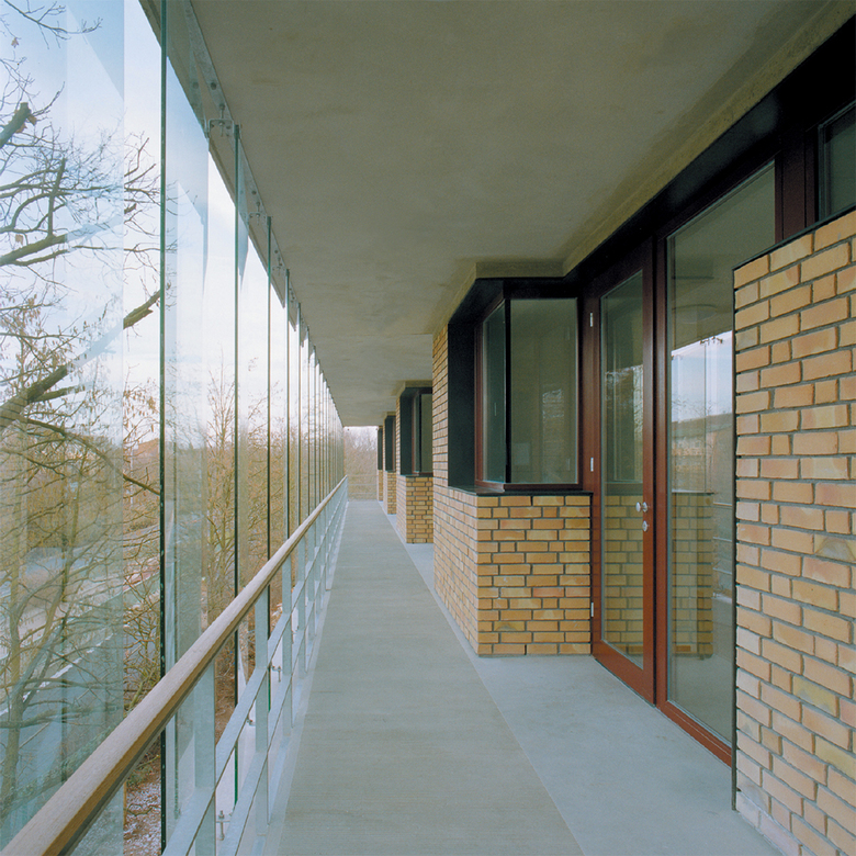 'In Würde alt werden. ... Eine klare, präzise durchdetaillierte Architektur bildet den unaufdringlichen Rahmen für die persönliche Entfaltung. ... Besonders überzeugt die Idee, das Haus entlang der stark befahrenen Straße über den voll verglasten Laubegang so zu erschließen, dass jede Wohneinheit über eine vorgelagerte Zone für das Gespräch außerhalb der eigenen Räume verfügt. Über Haustüren (nicht Wohnungstüren) werden die jeweiligen Wohnungen, die dank der großflächigen Verglasung lichtdurchflutet sind, erschlossen. ... Kurzum: eine vorbildliche, eine beispielhafte Lösung'