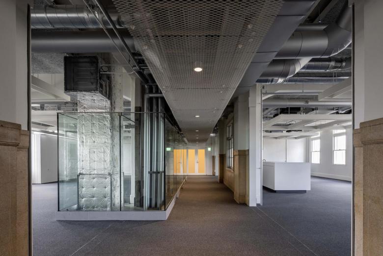 保存棟内部の空間でも会議室では1928年の歴史的な空間に新しく2023年に挿入された設備をガラス壁の向こうに露出させることで、ここでも歴史的空間とそれを支える現代の設備が重奏する様を表現した。 歴史的空間と現代をそれぞれの表現を尊重しながら同時に存在させること、そのどちらかに重点を置くのではなく、様々な時代がこの場所に存在し、また将来にはそこに新たな時代の変更が加わることをも容認することができる空間、そんな時間が重奏する建築としてこの建築は在りたい。