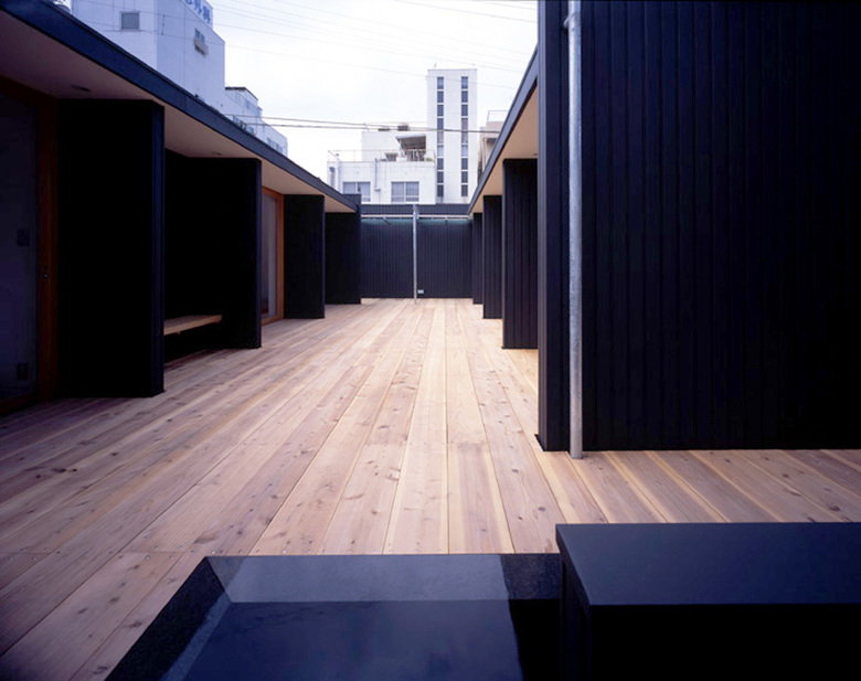 廊下やホールといったものを持たないこの住宅では、三つのパヴィリオンを結ぶこの外部空間が、この住宅のすべてのアクティビティのための舞台となる。それはもはや中庭と呼ばれるような、静かで安定した空間ではなく、さながら客家の「街」や「巷」か、あるいは中国の胡同Hu-tong のような露地の空間、さながら小さな都市空間のような様相を見せている。住宅の内部にパブリックな空間としての外部空間を導入するという、どこか矛盾した形式を試行することで、アジアの住宅のプロトタイプについて考えてみたいと思っていた。