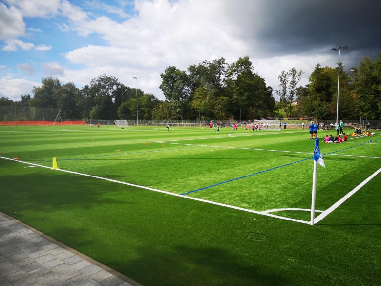 Neubau eines Fussballspielfeldes mit Kunstrasenbelag in einer bestehenden Sportanlage.