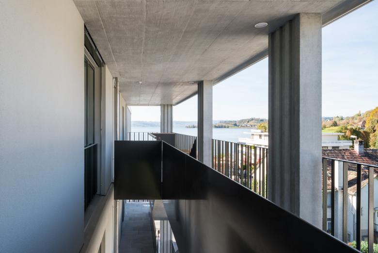 Bezahlbaren Wohnraum mit zeitgemässem Komfort; dies war die Vorgabe der Bauherrschaft. Der schmale Baukörper beherbergt zehn Mietwohnungen und im Erdgeschoss Büroateliers. Sämtliche Wohn- und Schlafräume orientieren sich zum südseitigen Grünraum. Alle Tagesräume sind mehrseitig belichtet, die Nasszellen können natürlich belüftet werden. Mit den umlaufenden Gesimsen, den profilierten Stützen und den feinen Metallgeländern werden Stilelemente der umliegenden Gründerzeitvillen aufgegriffen und zeitgemäss interpretiert. Die französischen Fenster ermöglichen eine sehr gute Belichtung und bieten vielfältige, nach allen Seiten orientierte Ausblicke. Die gedeckten Balkone und das laubenartige Treppenhaus sind in das System der umlaufenden Gesimse eingebunden und prägen die Erscheinung des Gebäudes allseitig.