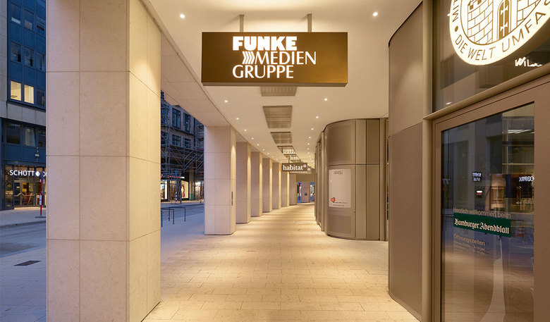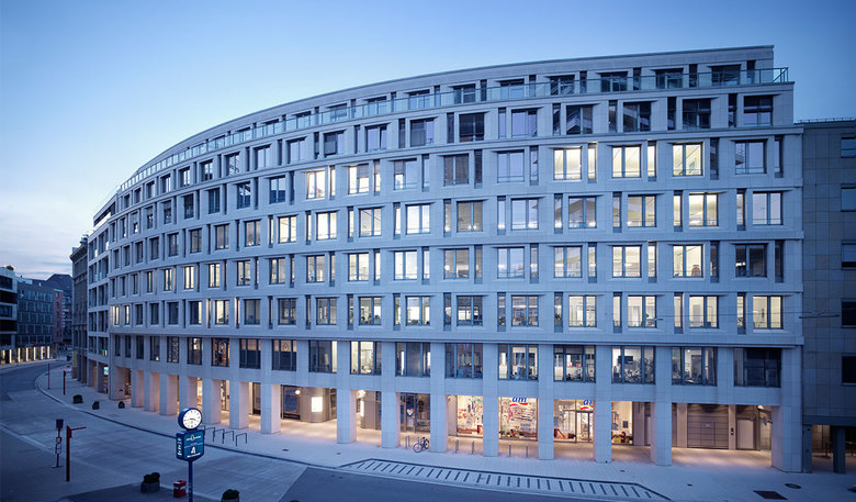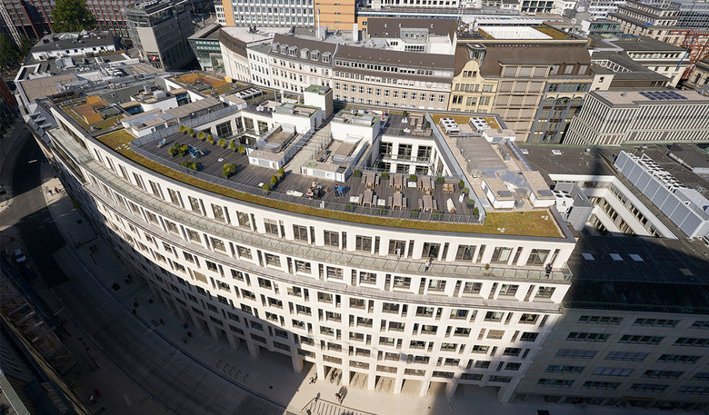 Die repräsentativen Neubauten im Herzen Hamburgs genießen in der traditionsbewussten Hansestadt ihre ganz eigene Aufmerksamkeit. So ist die unmittelbare Nachbarschaft zu dem Juwel der Stadt, dem prunkvollen Hamburger Rathaus, für die moderne, nachhaltige Architektur eine besondere Ehre und eine Verpflichtung zugleich. Genau hier, an der elegant geschwungenen Alstermeile, darf sich der hochwertige Neubau der Burstah Kolonnaden in die Kette feiner Hamburger Adressen einreihen. Selbstbewusst kommuniziert das Gebäude urbanen Glanz: Die Fassadengestaltung und Fensterraster sind dem klassischen Muster der sich geschmeidig verzahnenden Glieder des berühmten Cartier-Armbands nachgebildet. Parallel zur Biegung des legendären Mönkedammfleets schmiegt sich der Gebäudekörper wie selbstverständlich an den Stadtraum an und zieht den Betrachter unwillkürlich in seinen Bann. Ein Gebäude, das den Stolz der Stadt widerspiegelt.